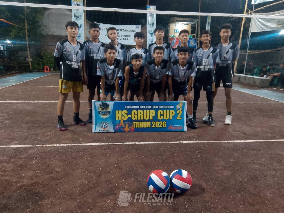 Filesatu.co.id, Jember | ABVG (Akademi Bola Voli Galaxy ) Arjasa berhasil memastikan diri lolos ke semifinal besar Turnamen HS Grup Cup 2026 yang digelar di Desa Kaliwining. Kepastian tersebut diraih setelah tim ABVG asal Desa Arjasa memenangkan pertandingan melawan Bimaloka B dari Gumukmas yang berlangsung di dusun Gayam Selatan Desa Kaliwining kecamatan Rambipuji Jember. Sabtu malam (7/3/2026).