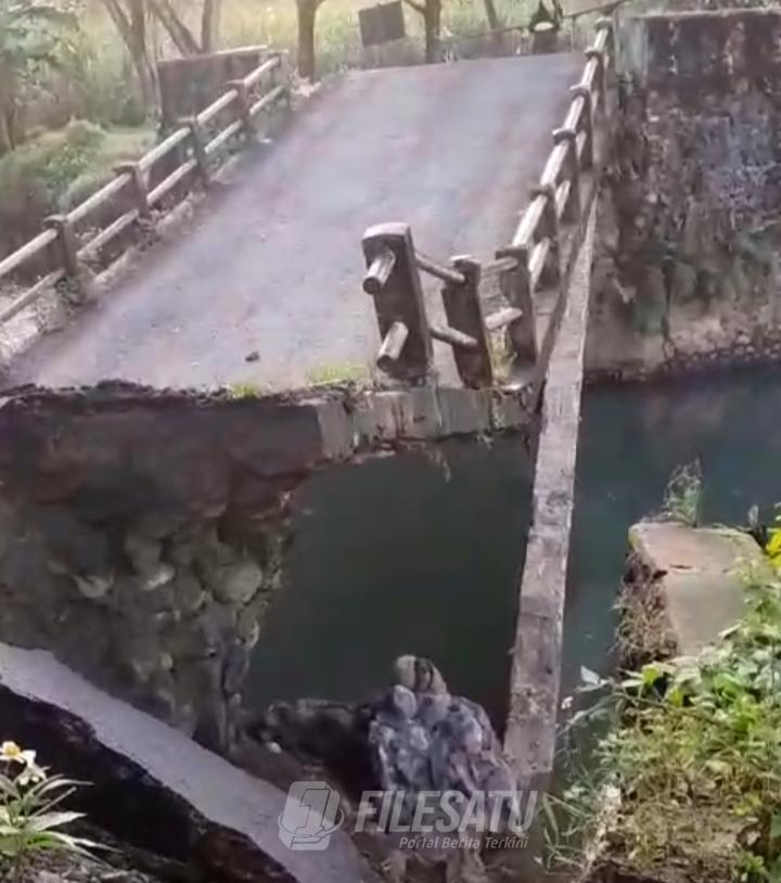 Filesatu.co.id,Banyuwangi | Satu-satunya jembatan penghubung antar desa kecamatan Pesanggaran tepatnya di kawasan PTPN XII Sungai Lembu pada ruas sebagian jalan mengalami ambrol, hal itu disinyalir karena usia atau kurangnya pemeliharaan. Akibatnya, akses jalan sudah dipastikan tidak bisa dilewati baik kendaraan roda dua maupun empat.