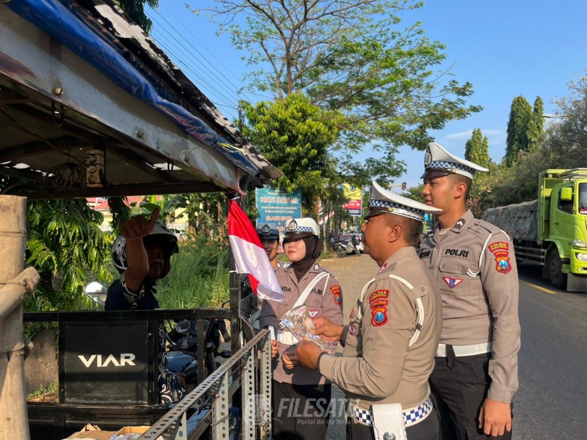 Filesatu.co.id, Probolinggo | Menyambut Hari Ulang Tahun (HUT) ke-80 Kemerdekaan Republik Indonesia, Polres Probolinggo Polda Jawa Timur menggelar aksi pembagian Bendera Merah Putih kepada masyarakat.