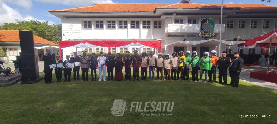 Filesatu.co.id, Bayuwangi | Dalam rangka memperingati Hari Ulang Tahun ke-80 Provinsi Jawa Timur, Pemerintah Kabupaten Banyuwangi menggelar kegiatan berbagi kepada para pengemudi ojek online (ojol) dan ojek konvensional, Minggu (12/10/2025).