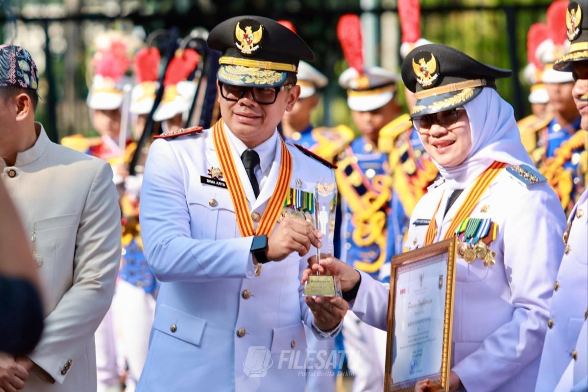 Penghargaan diserahkan langsung Wakil Menteri Dalam Negeri Bima Arya Sugiarto dalam Upacara Peringatan Hari Otonomi Daerah XXX Tahun 2026 di Plaza Kemendagri, Jakarta, Senin, 27 April 2026.