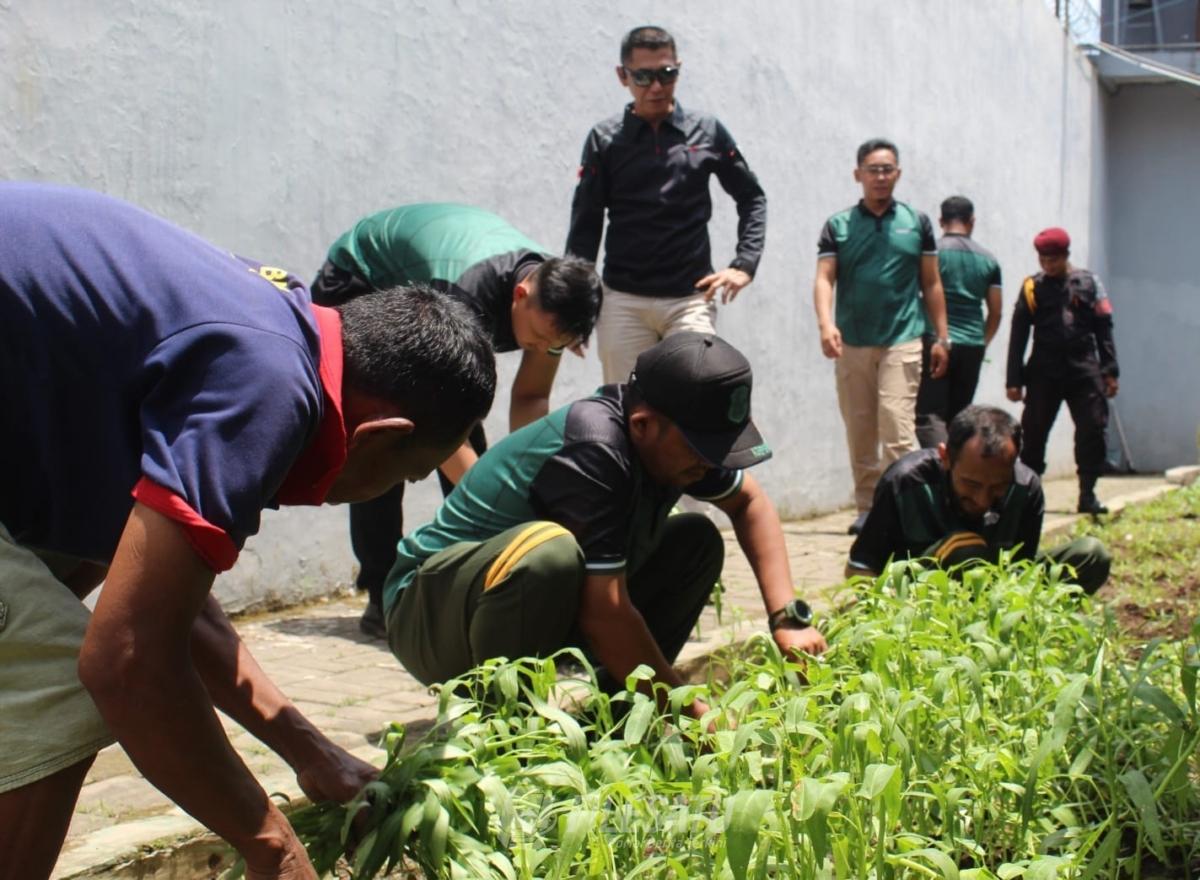Kepala Lapas Jember, RM. Kristyo Nugroho, memastikan kualitas dan kesegaran sayur yang dikonsumsi dapat memenuhi pasokan dapur sehat didalam Lapas.