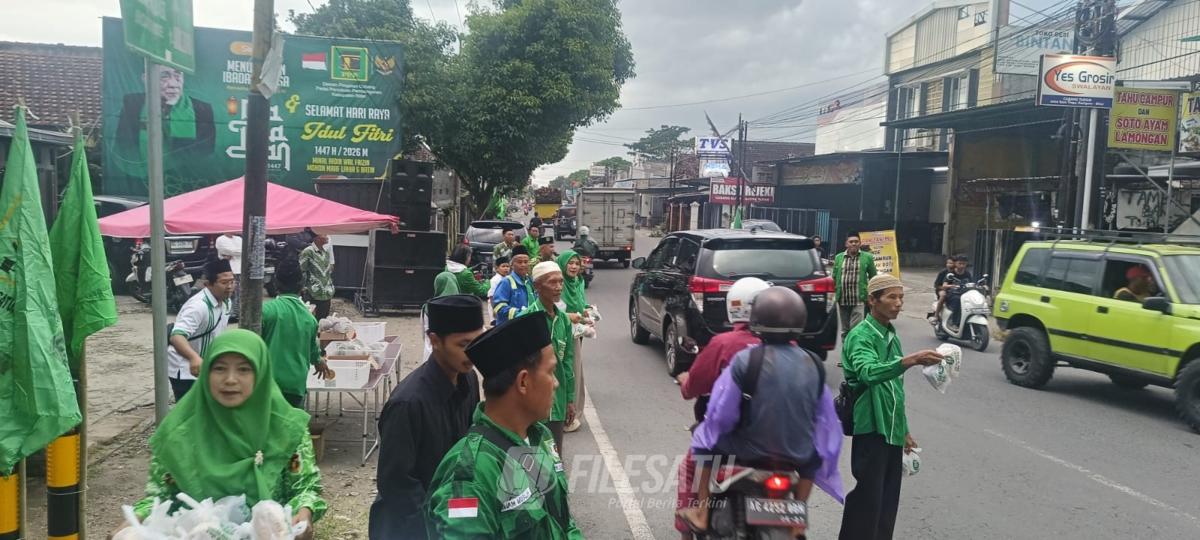 Filesatu.co.id, Blitar | Dewan Pimpinan Cabang (DPC) Partai Persatuan Pembangunan (PPP) Kabupaten Blitar menggelar kegiatan sosial dengan membagikan ribuan paket takjil kepada masyarakat dan para pengguna jalan yang melintas di depan kantor PPP di Kecamatan Kanigoro, Kabupaten Blitar, Sabtu (07/03/2026).