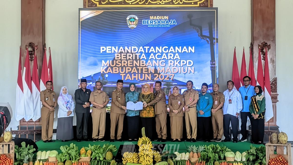 “Tema pembangunan tahun 2027 tetap berpedoman pada dokumen RPJMD Kabupaten Madiun Tahun 2025–2029, yaitu penguatan kualitas SDM untuk mendorong transformasi ekonomi, investasi, dan tata kelola pemerintahan,” jelasnya.