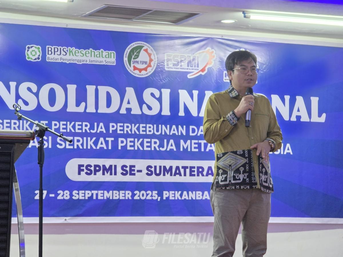Filesatu.co.id, Pekanbaru | Anggota Dewan Pengawas BPJS Kesehatan, Siruaya Utamawan, menegaskan pentingnya pemahaman dan advokasi hak jaminan kesehatan bagi para pekerja di sektor perkebunan dan kehutanan. Hal ini disampaikannya dalam sesi diskusi bertema “Manfaat BPJS Kesehatan bagi Pekerja Perkebunan dan Kehutanan” pada acara Konsolidasi Nasional Serikat Pekerja Perkebunan dan Kehutanan (SPPK) Federasi Serikat Pekerja Metal Indonesia (FSPMI) di Pekanbaru, Riau, Sabtu (27/9/2025).