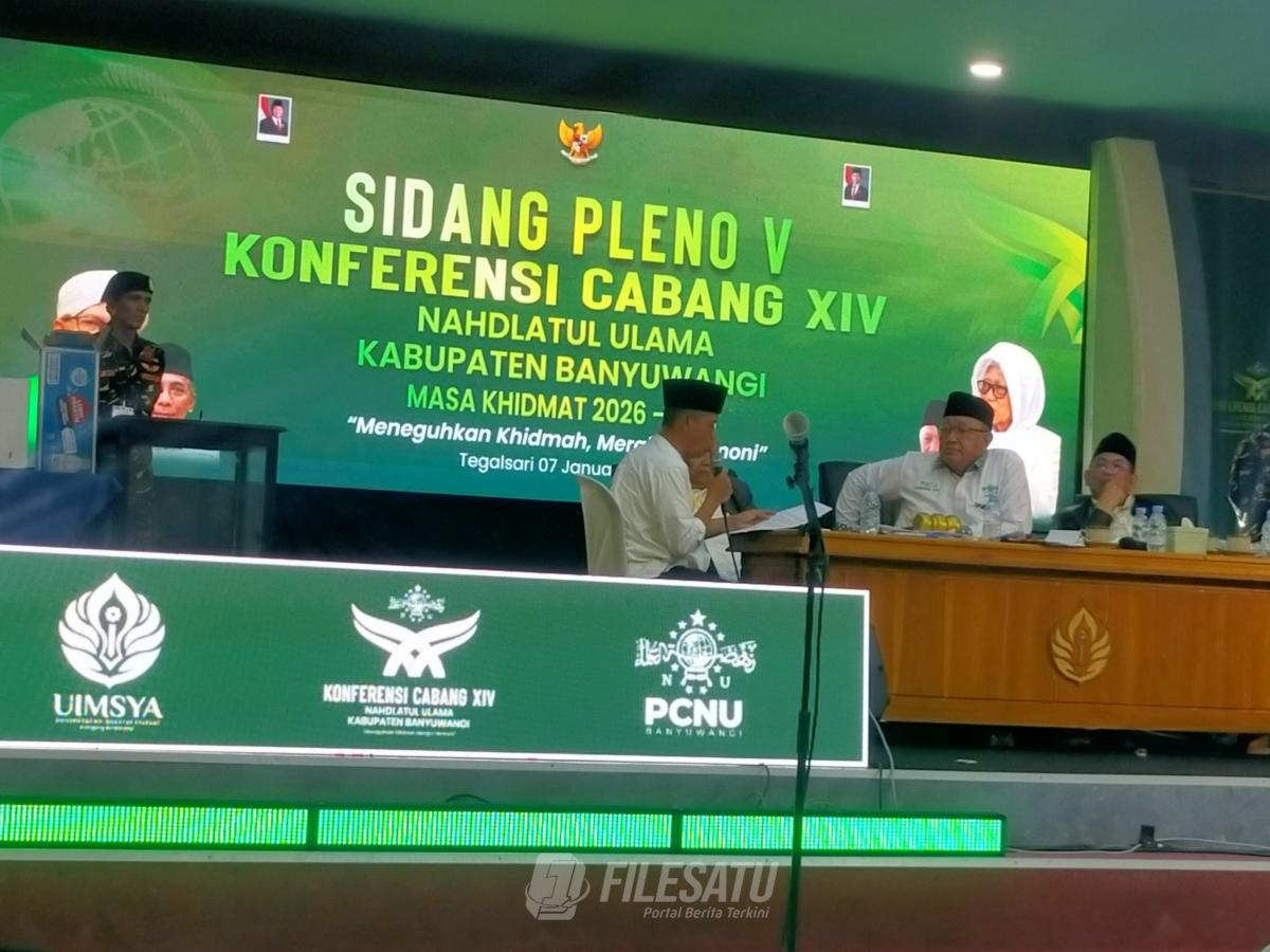 Filesatu.co.id, Banyuwangi | Konferensi Cabang (Konfercab) XVI Nahdlatul Ulama (NU) Banyuwangi sempat diwarnai perdebatan alot saat proses tahap seleksi hak suara dari 25 MWC NU. Diawali dugaan curang, pemalsuan hak suara, sehingga pemimpin sidang harus menghitung dan mengkoreksi ulang untuk mencocokan surat suara hingga tiga kali.