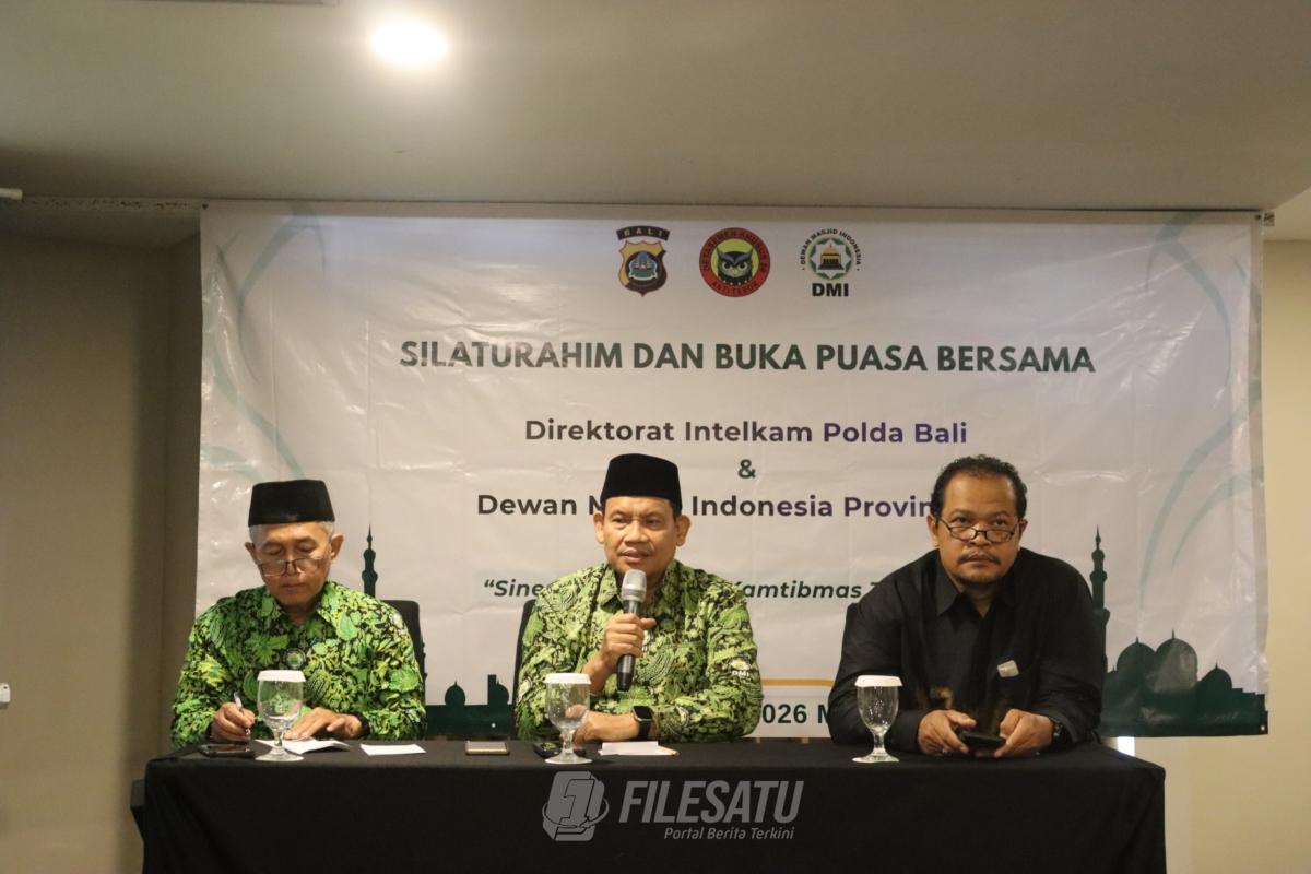 Filesatu.co.id, Denpasar – Bali | Dalam rangka memperkuat moderasi beragama dan toleransi antar umat beragama menjelang Malam Takbiran Idulfitri 1447 H yang bertepatan dengan pelaksanaan Hari Suci Nyepi Tahun Caka 1948, Direktorat Intelijen dan Keamanan (Ditintelkam) Polda Bali bersama Pimpinan Wilayah Dewan Masjid Indonesia (PW DMI) Bali menggelar kegiatan silaturahmi dan buka puasa bersama di Hotel Quest San, Jalan Mahendradatta, Denpasar Barat, Jumat (13/3/2026).