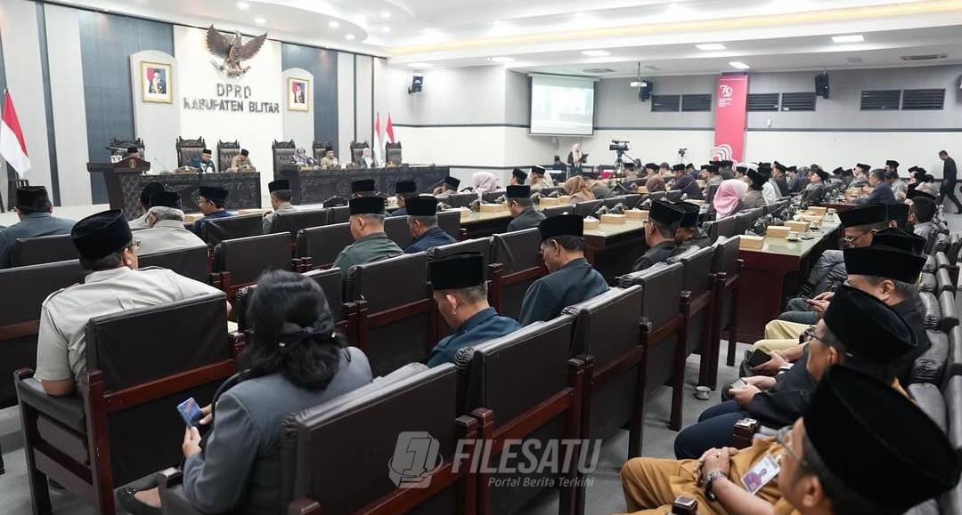 Filesatu.co.id, Blitar | DPRD Kabupaten Blitar menggelar rapat paripurna dipimpin oleh Wakil ketua III, Hj. Susi Narulita Kumala Dewi, S.IP, M.AP didampingi wakil ketua I, H.M. Rifa’i dan Wakil Ketua II, Hj. Ratna Dewi Nirwana Sari, S.S, SH, M.Kn. Rapat paripurna dihadiri oleh 39 anggota DPRD serta anggota Forkompimda Kabupaten Blitar dan sejumlah tamu undangan. Senin (11/08/2025).