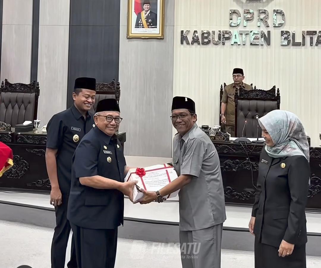 Filesatu.co.id, Blitar | Dewan Perwakilan Rakyat Daerah (DPRD) Kabupaten Blitar menggelar Rapat Paripurna dengan agenda Penyampaian Penjelasan Bupati Blitar terhadap Rancangan Peraturan Daerah (Ranperda) tentang Pertanggungjawaban Pelaksanaan APBD Tahun Anggaran 2024. Kegiatan berlangsung di Graha Paripurna DPRD Kabupaten Blitar dan dihadiri oleh jajaran legislatif dan eksekutif. Senin (16/06/2025).
