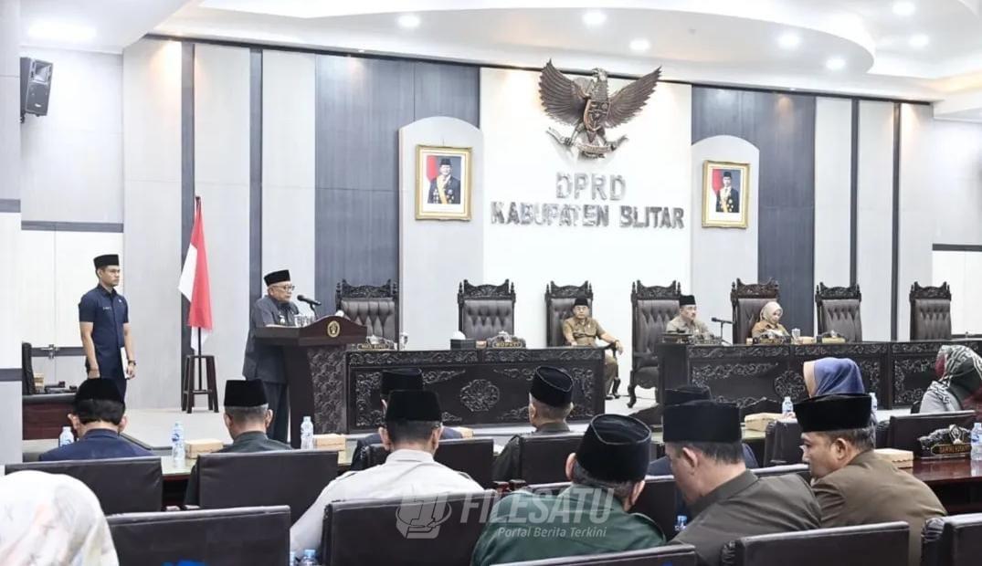 Filesatu.co.id, Blitar | DPRD Kabupaten Blitar menggelar Rapat Paripurna dengan agenda Bupati Blitar Rijanto menyampaikan jawaban atas pandangan umum fraksi DPRD dalam pembahasan Perubahan APBD Tahun Anggaran 2025. Rapat berlangsung di Graha Paripurna DPRD Kabupaten Blitar pada Kamis (11/09/2025).