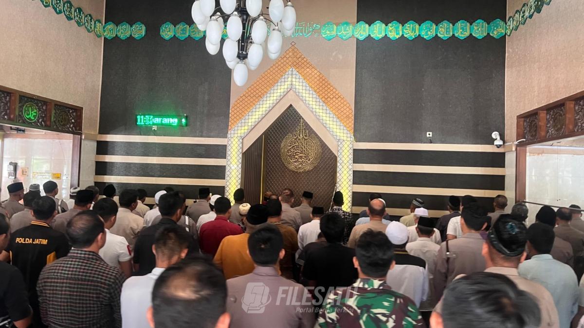 Sholat ghaib dilaksanakan di Masjid Roudhotul Jannah, Mako Polresta Banyuwangi, Jumat (29/8/2025) siang, usai pelaksanaan sholat Jumat berjamaah.