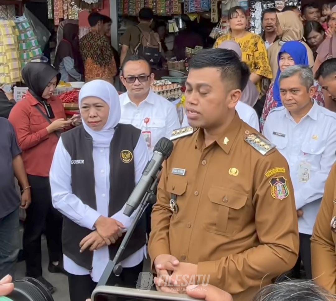 Gubernur Jawa Timur (Jatim) Khofifah menyampaikan bahwa, peninjauan pasar dilakukan untuk memastikan stok dan harga bahan pokok, khususnya beras, benar-benar aman di pasaran.