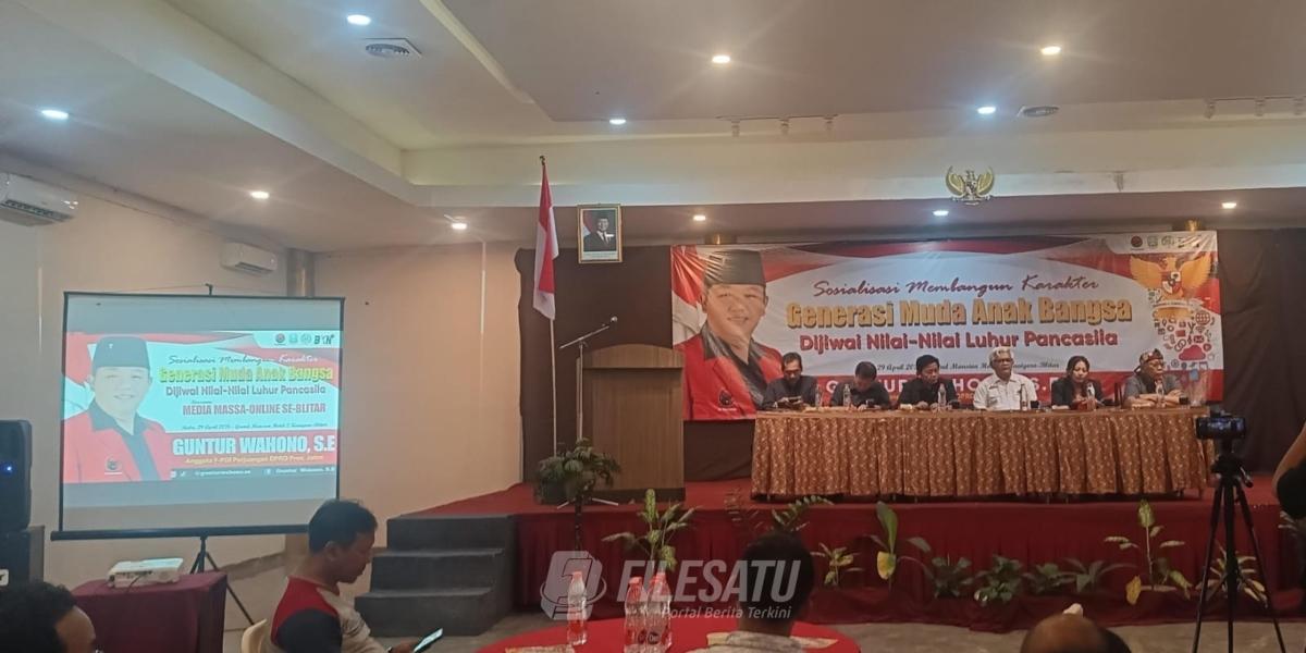 Filesatu.co.id, BLITAR | UPAYA memperkuat karakter generasi muda terus digencarkan melalui kegiatan sosialisasi bertema kebangsaan. Kegiatan ini digelar di Hall Hotel Grand Mansion II Kanigoro, mengangkat tema “Membangun Karakter Generasi Muda Anak Bangsa Dijiwai Nilai-Nilai Luhur Pancasila” dan dihadiri oleh insan media massa di Blitar Raya. Rabu (29/04/2026).