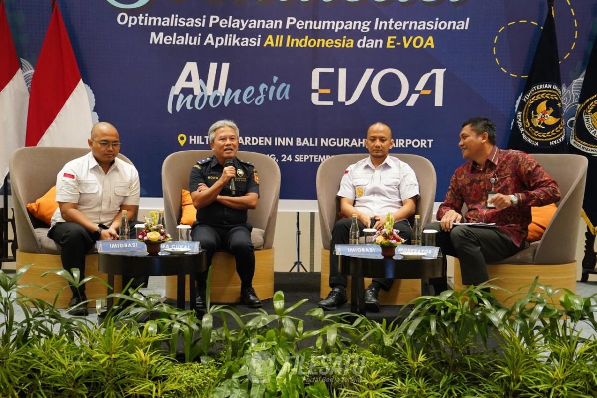Dikesempatan yang sama, Gde Oki Rizky Aryandhika Heris, Kepala Bidang Tempat Pemeriksaan Imigrasi Ngurah Rai, menambahkan bahwa aplikasi All Indonesia berfungsi sebagai platform terpadu yang mengintegrasikan pelaporan keimigrasian, bea cukai, kesehatan, dan karantina.