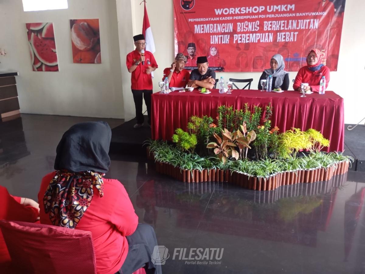 Filesatu.co.id, Banyuwangi | Mengusung tema ‘Membangun Bisnis Berkelanjutan Untuk Perempuan Hebat’DPC PDI Perjuangan menggelar pelatihan UMKM yang diikuti ibu-ibu dan kader perempuan PDI Perjuangan Banyuwangi di hall Hotel Mahkota Genteng, Kecamatan Genteng, Banyuwangi, Senin (15/12/2025)