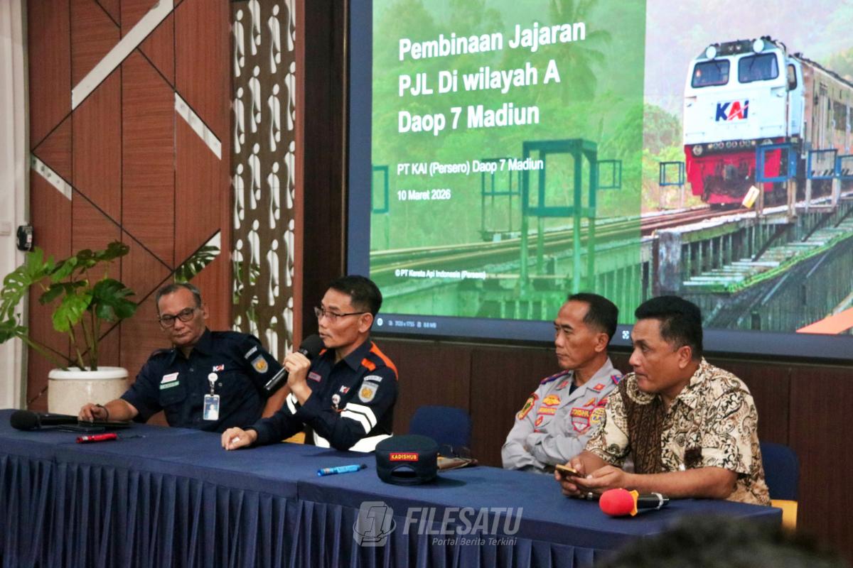 Filesatu.co.id, Madiun | Menjelang masa Angkutan Lebaran 1447 H/2026, PT Kereta Api Indonesia (Persero) Daerah Operasi 7 Madiun memperkuat pengawasan keselamatan perjalanan kereta api dengan menggelar pembinaan terpadu bagi ratusan Petugas Jaga Lintasan (PJL), Selasa (10/3/2026).