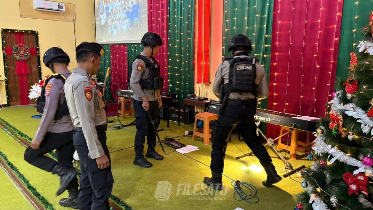 Filesatu.co.id, Madiun | Sat Samapta Polres Madiun melaksanakan kegiatan sterilisasi di sejumlah gereja di wilayah Kabupaten Madiun menjelang perayaan Natal, Rabu (24/12/2025). Kegiatan ini merupakan bagian dari upaya pengamanan terpadu guna menciptakan rasa aman dan nyaman bagi umat Kristiani yang akan melaksanakan ibadah Natal.