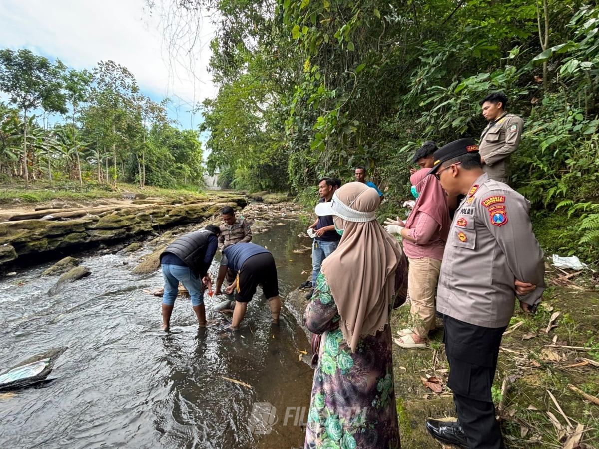 Benar saja, sesampai di lokasi TKP, terlihat janin dengan kondisi yang sangat memprihatinkan, selain tali pusar yang mengambang di air, tampak tubuh janin tersangkut di batu paras Sungai dalam keadaan telanjang tanpa sehelai kain serta tangan posisi menekuk dibagian kepala.