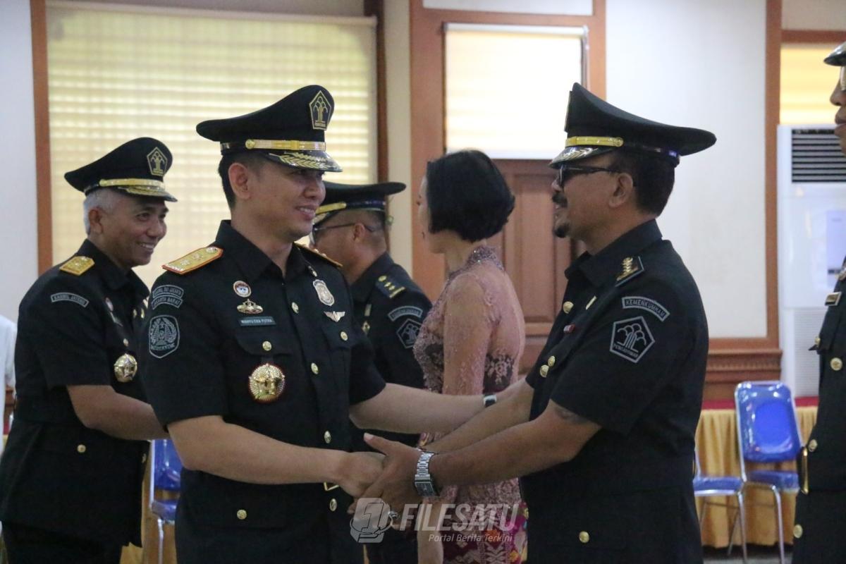 Filesatu.co.id,  Denpasar – Bali | Kepala Kanwil Kementerian Hukum Bali, Wahyu Eka Putra hari ini melantik dan mengambil sumpah/janji pejabat administrasi dan pejabat fungsional di lingkungan Kantor Wilayah Kementerian Hukum Bali. Pelantikan ini merupakan sebagai bagian dari upaya untuk memperkuat kinerja Kementerian Hukum pada masa transisi dan memberikan pelayanan publik yang lebih baik, 13/1/2025.