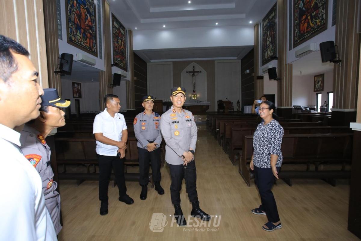 Filesatu.co.id, Madiun | Dalam rangka memastikan keamanan dan kenyamanan umat Kristiani dalam menyambut perayaan Hari Raya Natal, Kapolres Madiun AKBP Kemas Indra Natanegara, S.H., S.I.K., M.Si. melaksanakan pengecekan langsung ke sejumlah gereja di wilayah Kabupaten Madiun, Senin (22/12/2025).