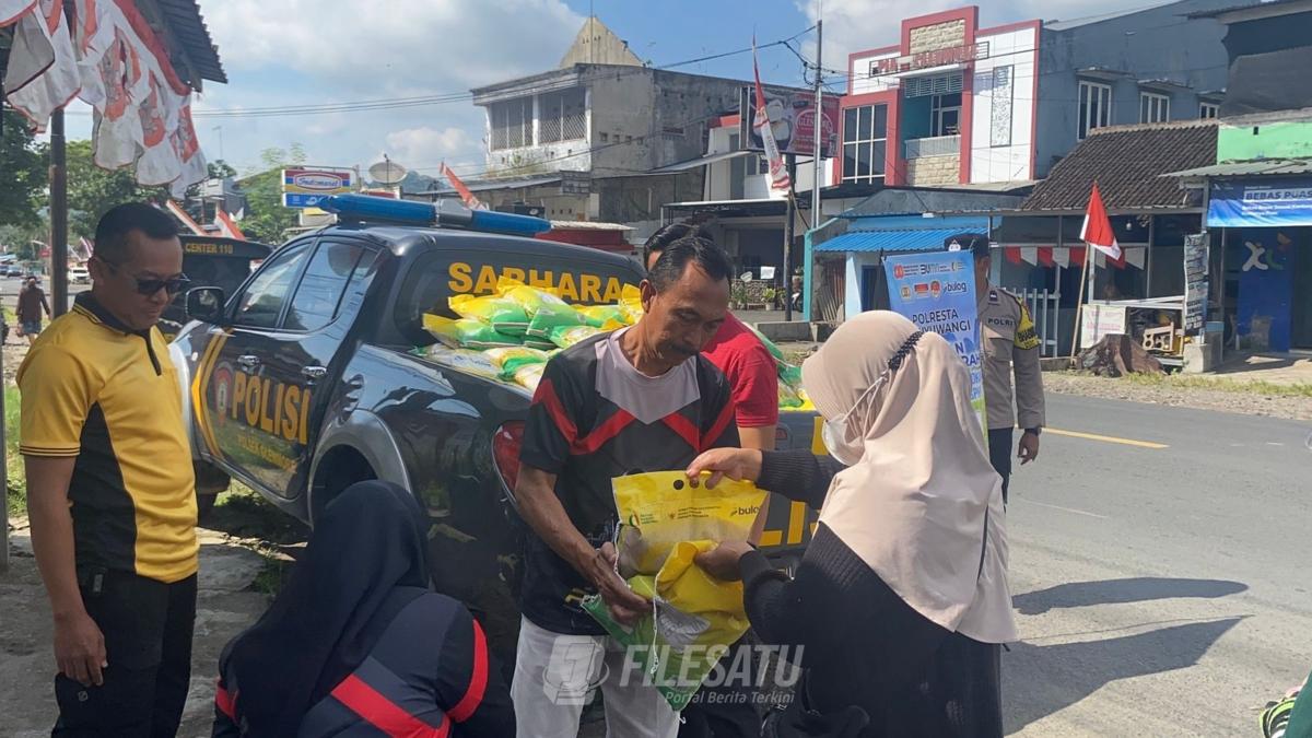 Kegiatan ini digelar dengan menyalurkan beras SPHP dari bulog di sejumlah titik wilayah Banyuwangi, bekerja sama dengan polsek jajaran.