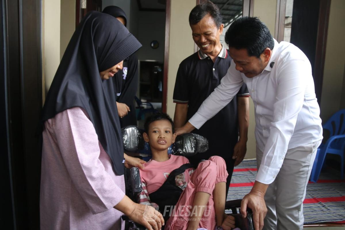 Filesatu.co.id, SIDOARJO | MISHESLY Taliyata Zanih (16th) gadis yang mengalami kelumpuhan sejak kecil, putri dari Sukandar dan Ibu Kiswahyuni, dapat bantuan kursi roda. Bantuan diserahkan secara langsung oleh Bupati Sidoarjo H. Subandi SH., M.Kn. Sabtu 15/11/2025.