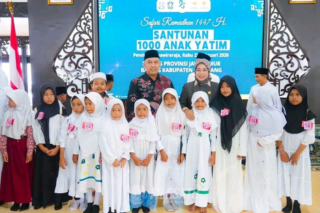 Filesatu.co.id Lumajang | Ketua DPRD Kabupaten Lumajang Hj. Oktafiyani, SH., MH., menyampaikan Ramadan menjadi momentum untuk berbagi, peduli, dan menguatkan harapan. Hal itu disampaikan saat hadir bersama Ketua Komisi D DPRD Kabupaten Lumajang Supratman, S.H., dalam kegiatan Santunan 1.000 Anak Yatim Dhuafa yang diselenggarakan oleh Badan Amil Zakat Nasional (Baznas) Kabupaten Lumajang Rabu (25/2/2026) di Pendopo Arya Wiraraja.