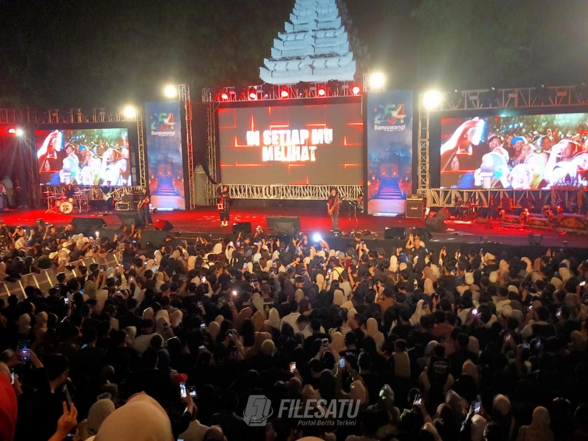 Filesatu.co.id, Banyuwangi | Memperingati Hari Jadi Banyuwangi (Harjaba) yang ke-254 Pemda Banyuwangi menggelar konser musik rock papan atas Indonesia grup Band Kotak yang ditempatkan di Gesibu, Sabtu (20/12/2025) malam.