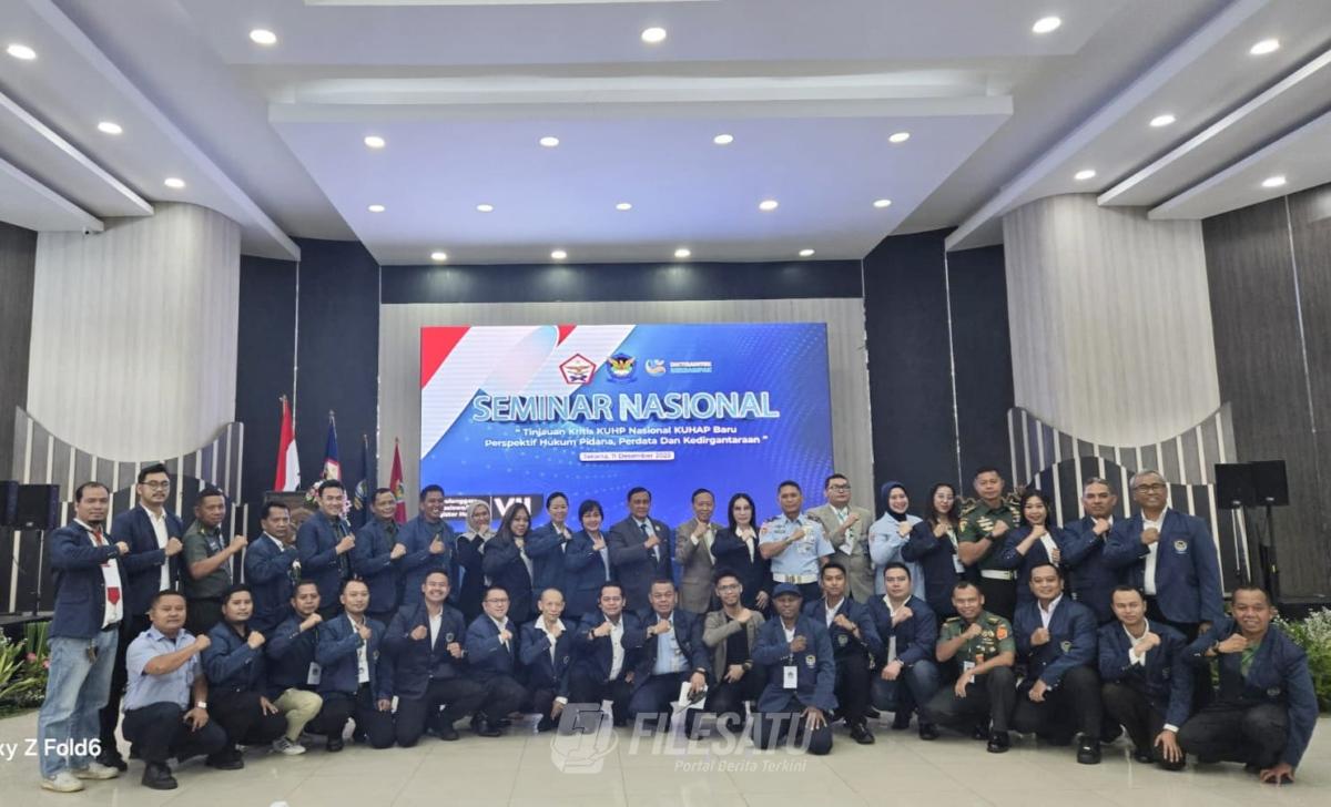 Filesatu.co.id, Jakarta | Mahasiswa Program Pascasarjana Magister Hukum Universitas Dirgantara Marsekal Suryadarma (Unsurya) Angkatan VII menggelar seminar hukum bertema “Tinjauan Kritis KUHP Nasional dan KUHAP Baru Perspektif Hukum Pidana, Perdata, dan Kedirgantaraan” di Balai Prajurit Ardhya Loka, Halim Perdanakusuma, Jakarta Timur, Kamis (11/12/2025). Kegiatan digelar secara hibrida untuk peserta luring dan daring melalui Zoom Meeting.