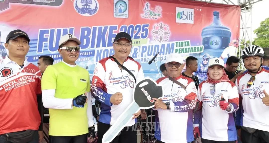 Filesatu.co.id, Blitar | Pemerintah Kabupaten (Pemkab) Blitar melaksanakan acara Fun Bike dalam rangka Hari KORPRI ke-54 dan Ulang Tahun PDAM ke-33 tahun 2025. Acara ini diikuti oleh ASN dan masyarakat umum, serta diiringi dengan berbagai kegiatan bakti sosial di beberapa lokasi yakni Kembang Arum, Jegu, Sawentar, dan Kanigoro. Minggu, (16/11/2025).Pada kesempatan ini, Bupati Blitar, H. Rijanto dan Wakil Bupati Blitar, H. Beky Herdiansyah menyerahkan bantuan dari Baznas kepada masyarakat yang membutuhkan.