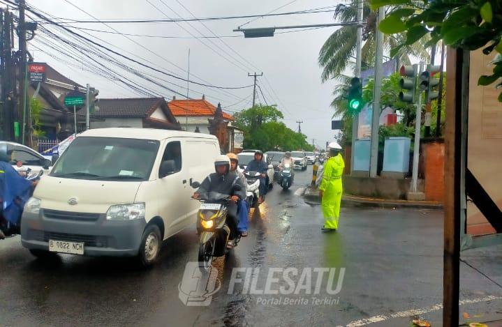 Filesatu.co.id, Denpasar – bali | Hujan yang mengguyur wilayah Denpasar Timur pada pagi hari tidak menyurutkan semangat personil Unit Lalu Lintas Polsek Denpasar Timur (Dentim) untuk tetap menjalankan tugasnya mengatur arus lalu lintas di sejumlah titik rawan kepadatan, Senin (10/2/2025) pagi.