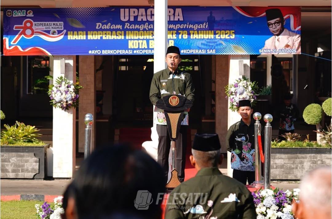 Filesatu.co.id, Kota Blitar | Wali Kota Blitar, H. Syauqul Muhibbin, S.H.I., atau yang akrab disapa Mas Ibbin, memimpin langsung Upacara Peringatan Hari Koperasi Nasional ke-78 Tahun 2025 yang digelar di halaman Kantor Wali Kota Blitar, Senin (21/07/2025).