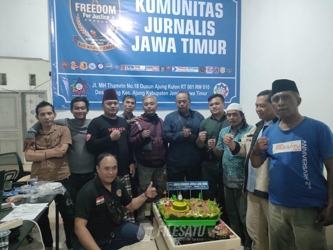 Filesatu.co.id, Jember | Bertepatan dengan Hari Pahlawan, Komunitas Jurnalis Jawa Timur (KJJT) wilayah Jember menggelar syukuran sekaligus peresmian kantor baru di Jalan MH.Thamrin no 18 Dusun Ajung kulon Desa Ajung, Kecamatan Ajung, Kabupaten Jember Senin (10/11/2025) malam.