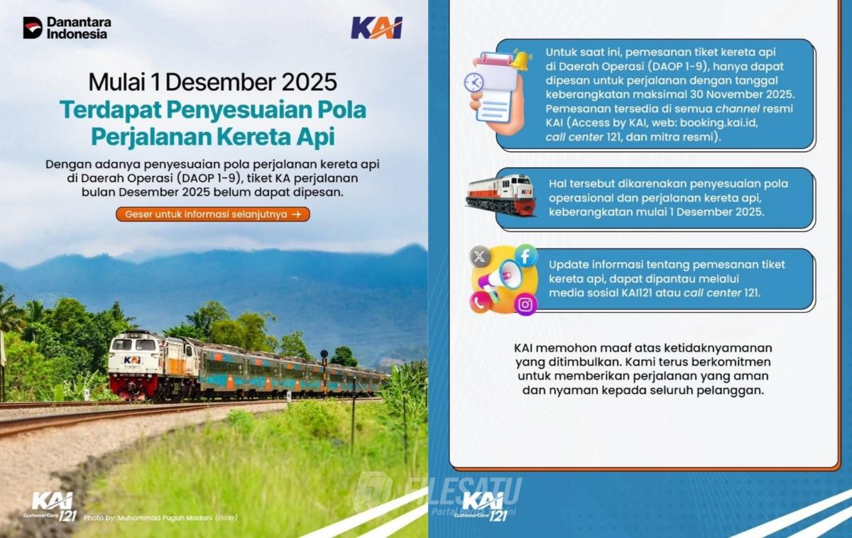 KAI akan segera mengumumkan pembukaan kembali pemesanan tiket Desember setelah proses penyesuaian selesai. “Kami memohon maaf atas ketidaknyamanan selama proses berlangsung dan mengimbau masyarakat untuk memantau informasi resmi melalui akun @KAI121, situs kai.id, atau Call Center 121,” tutup Zainul.