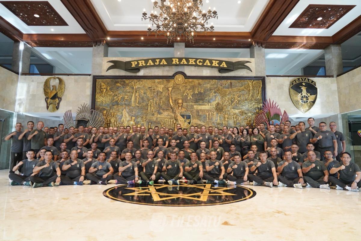 Filesatu.co.id, Denpasar – Bali | Pangdam IX/Udayana, Mayjen TNI Muhammad Zamroni, S.IP., M.Si., melaksanakan olahraga bersama dengan para prajurit dan PNS Makodam IX/Udayana di Lapangan Apel Makodam, Jl. Udayana No. 1, Denpasar, pada Jumat (7/3/2025).