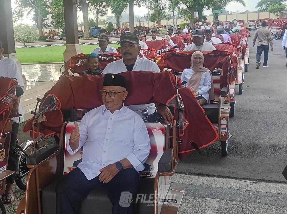 Filesatu.co.id, Blitar | Pemerintah Kabupaten Blitar bersama Yayasan Gerakan Solidaritas Nasional (YGSN) menyalurkan bantuan 200 unit becak listrik kepada para pengayuh becak lanjut usia di Kabupaten Blitar. Penyerah bantuan tersebut berlangsung di Pendopo Sasana Adi Praja Komplek Kantor Bupati Kanigoro, Sabtu (07/03/2026).