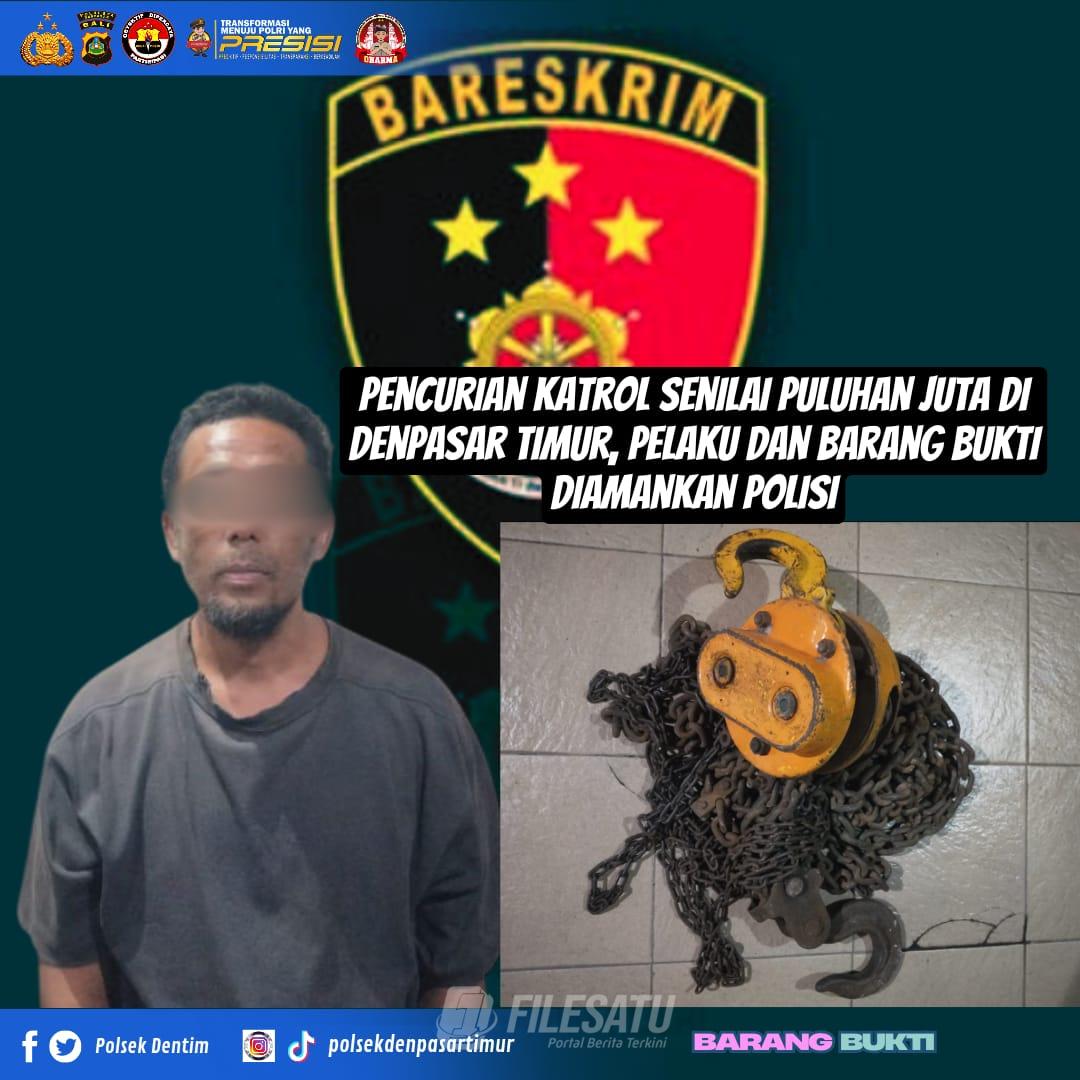 Filesatu.co.id, Denpasar – Bali | Unit Reskrim Polsek Denpasar Timur (Dentim) berhasil mengungkap kasus pencurian alat katrol senilai Rp 27 juta yang terjadi di Jln. Bypass Ngurah Rai No. 134 Z, Banjar Kerta Pura, Desa Kesiman Kertalangu, Denpasar Timur. Pelaku, seorang pria berinisial N (47), berhasil diamankan bersama barang bukti.