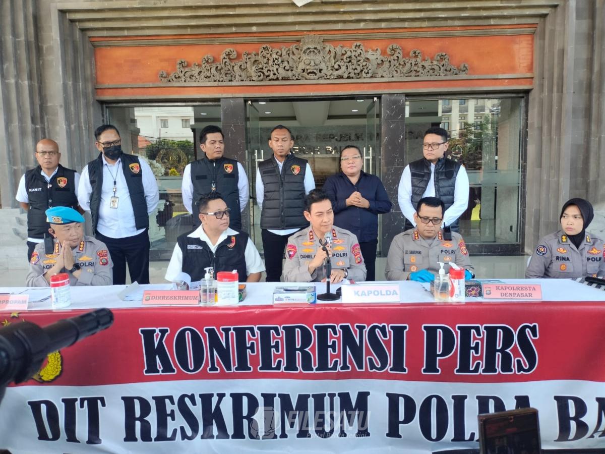 Konferensi pers tersebut dihadiri langsung oleh Kapolda Bali beserta jajaran pejabat utama, di antaranya Dirreskrimum, Kabid Propam, Kapolresta Denpasar, dan Kasubid Penmas Bidhumas Polda Bali.