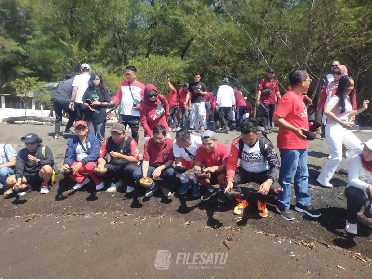 Filesatu.co.id, Banyuwangi | Momentum peringatan HUT Kemerdekaan RI yang ke-80, DPC PERADI Banyuwangi menggelar perlombaan balapan Karung dan voli pantai serta pelepasan 25 ekor Tukik penyu jenis Lekang di Pantai Cemara desa Kalirejo kecamatan Kabat. Sabtu (23/8/2025).