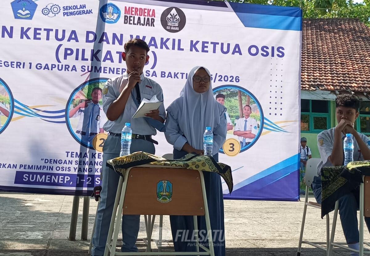 Filesatu.co.id, SUMENEP | SMA Negeri 1 Gapura, Kabupaten Sumenep, Madura, berhasil menyelenggarakan Pemilihan Ketua dan Wakil Ketua OSIS (Pilketos) untuk masa bakti 2025/2026. Acara ini menjadi wujud nyata penerapan nilai-nilai demokrasi di lingkungan sekolah, memberikan kesempatan kepada siswa untuk belajar berpolitik secara sehat dan bertanggung jawab.