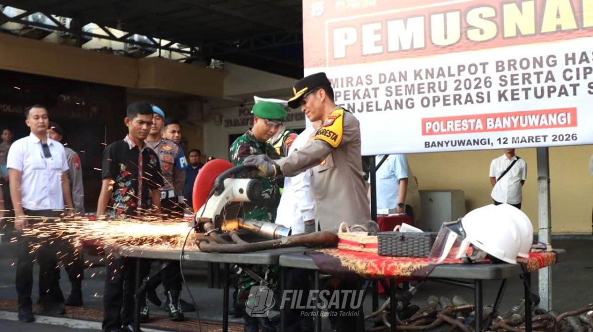 Filesatu.co.id, Banyuwangi | Kepolisian Resor Kota (Polresta) Banyuwangi mempertegas komitmennya dalam menjaga kesucian bulan Ramadhan dan kenyamanan mudik Lebaran melalui rilis hasil Operasi Pekat Semeru 2026 serta upaya Cipta Kondisi menjelang libur panjang Idulfitri 1447 H. Dalam kegiatan yang digelar pada Kamis (12/03/2026), Polresta Banyuwangi memaparkan keberhasilan mengungkap puluhan kasus kriminalitas sekaligus melakukan pemusnahan barang bukti skala besar.