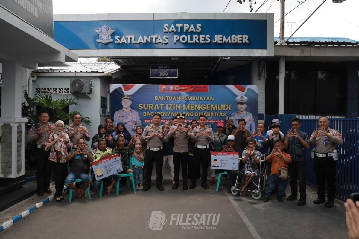 Filesatu .co.id, Jember | Ada yang berbeda di peringatan Hari Ulang Tahun ke-70 Satuan Lalu Lintas kali ini. Satlantas Polres Jember menggelar layanan spesial berupa pembuatan dan perpanjangan SIM D gratis khusus bagi penyandang disabilitas. Rabu, (17/9/2025) .