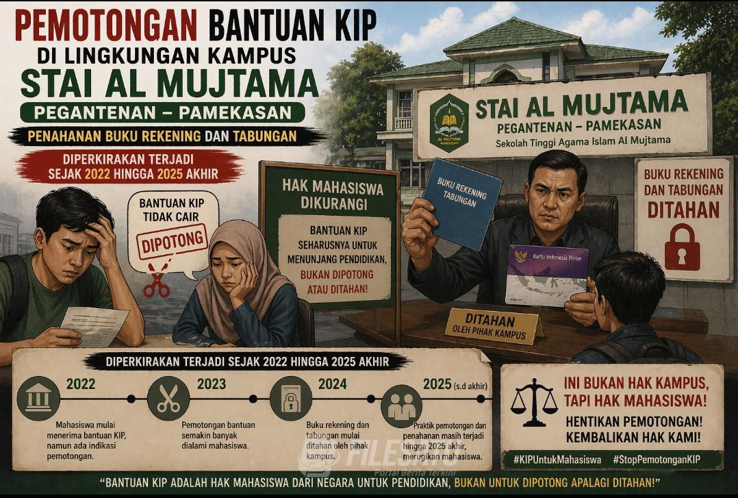 Filesatu.co.id, PAMEKASAN | DUGAAN praktik pemotongan bantuan Kartu Indonesia Pintar (KIP) di lingkungan kampus STAI Al Mujtama Pamekasan mulai terkuak. Praktik yang diperkirakan berlangsung sejak 2022 hingga akhir 2025 ini memantik sorotan tajam, setelah sejumlah informasi dihimpun media pada Kamis (23/4/2026).
