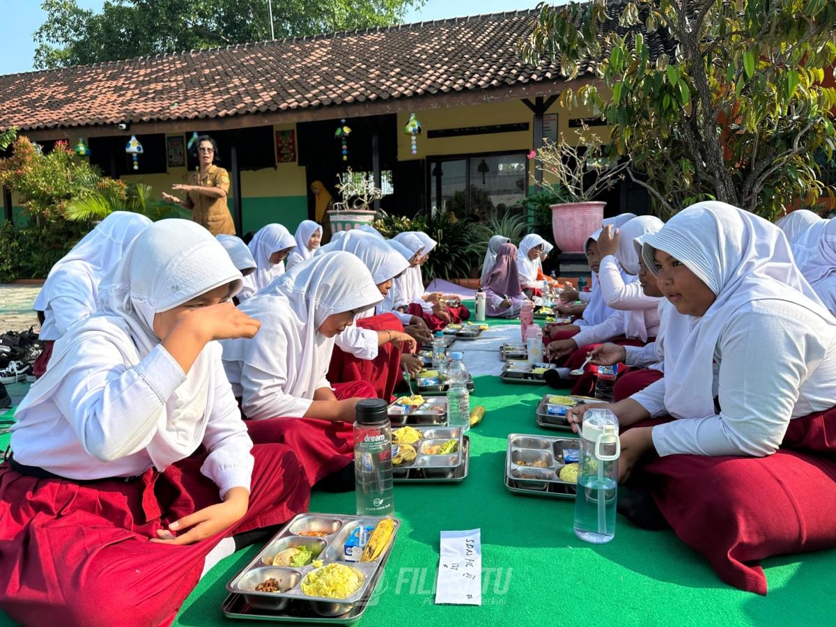 Distribusi makanan tetap berjalan disiplin sejak pukul 07.00 WIB, menyasar berbagai jenjang pendidikan mulai dari PAUD, TK, SD, SMP hingga pondok pesantren di wilayah sekitar.