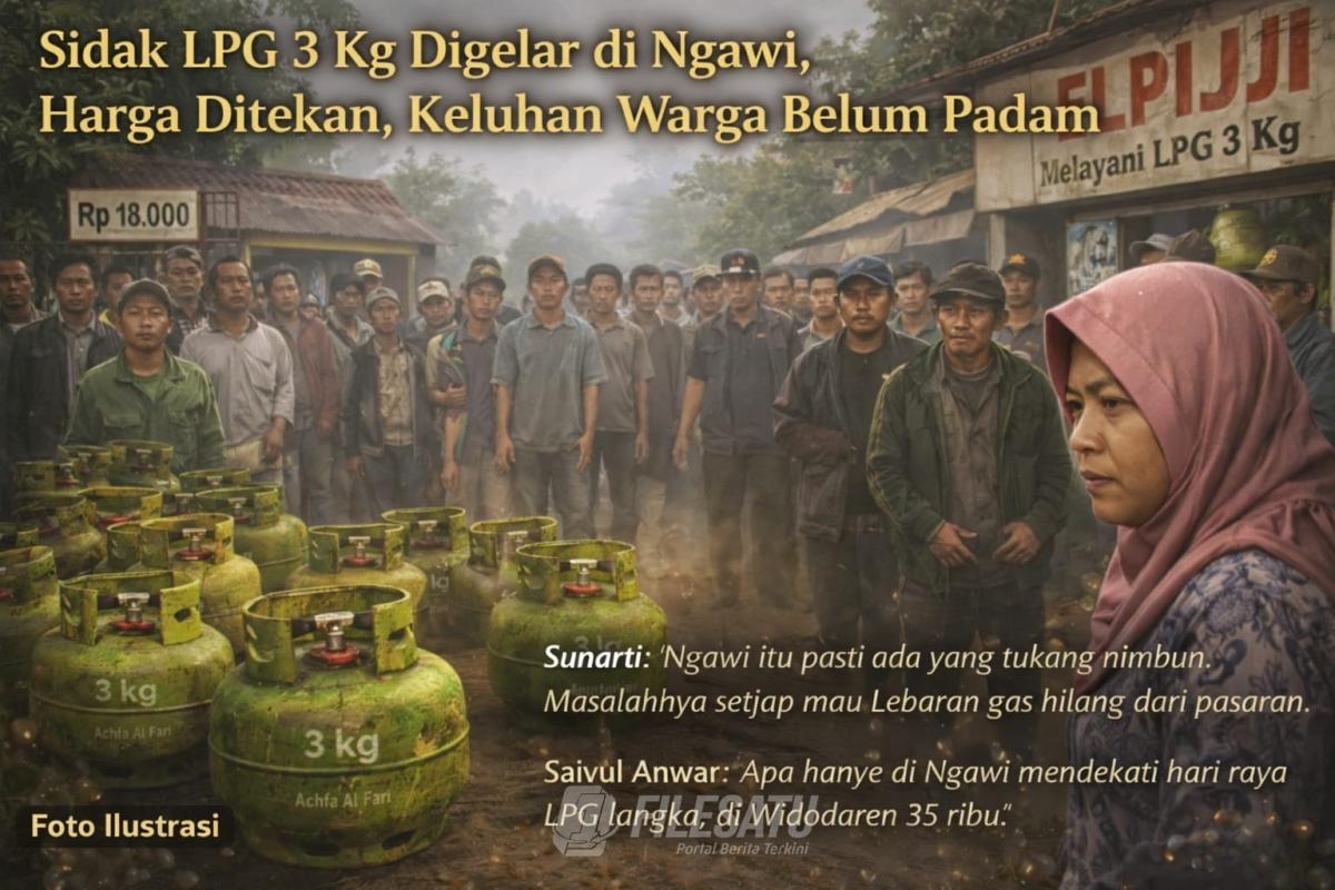 Filesatu.co.id, Ngawi | Senin lalu (16/03/2026), Pemerintah Kabupaten Ngawi bersama Satgas Pangan melakukan inspeksi mendadak (sidak) LPG 3 kilogram di Kecamatan Kedunggalar untuk menekan lonjakan harga yang sempat menyentuh Rp30 ribu per tabung. Di atas kertas, harga kembali diarahkan ke HET Rp18 ribu. Namun di lapangan, keluhan warga masih terus bermunculan.