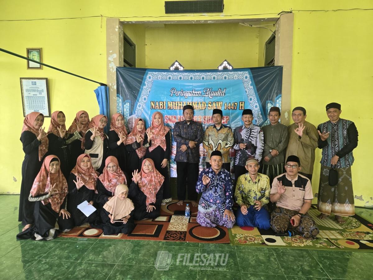 Filesatu.co.id, SUMENEP | SUASANA penuh makna terasa di lingkungan SMA Negeri 3 Sumenep, Madura, saat seluruh warga sekolah bersama-sama memperingati Maulid Nabi Muhammad SAW. Dengan mengusung tema “Rindu Kami ya Rasulullah SAW Tak Bisa Kami Membalas Besarnya Cintamu”, kegiatan ini menjadi momen refleksi untuk meneladani nilai-nilai luhur Rasulullah dalam kehidupan sehari-hari.
