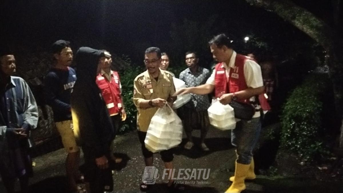 Filesatu.co.id, Jember | Palang Merah Indonesia (PMI) Kabupaten Jember menyalurkan bantuan makanan siap saji berupa nasi bungkus kepada warga yang terdampak banjir luapan air sungai akibat guyuran hujan selama kurang lebih tiga jam. Senin malam (15/12/2025).